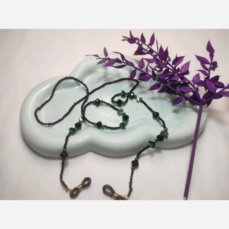 بند عینک آفتابی و طبی طرح سنگی مشکی سبز